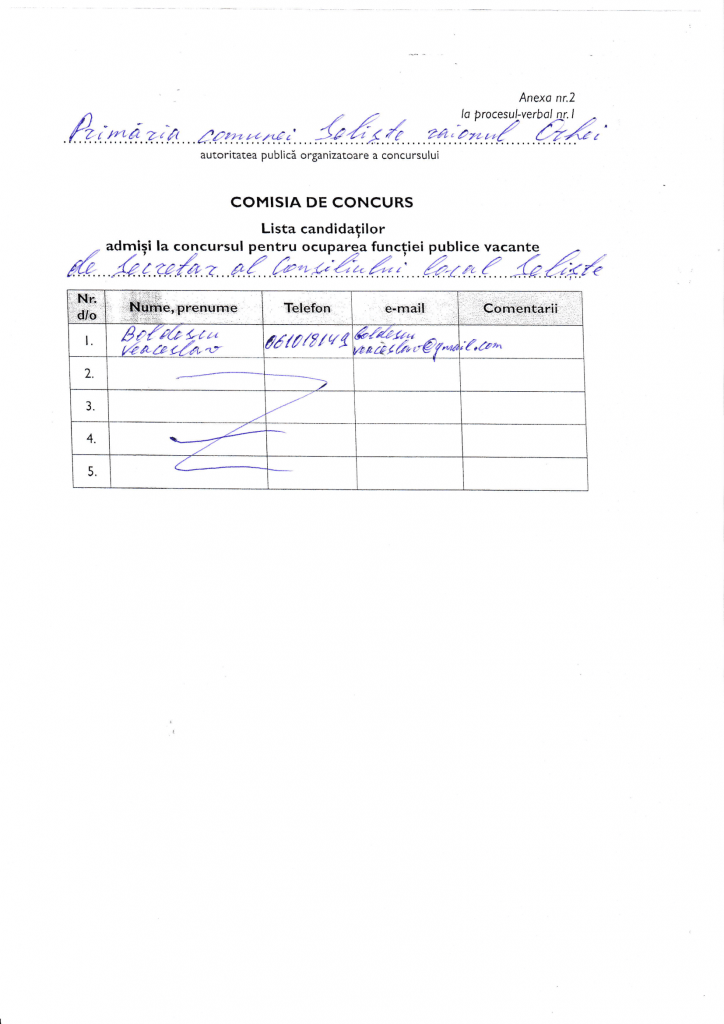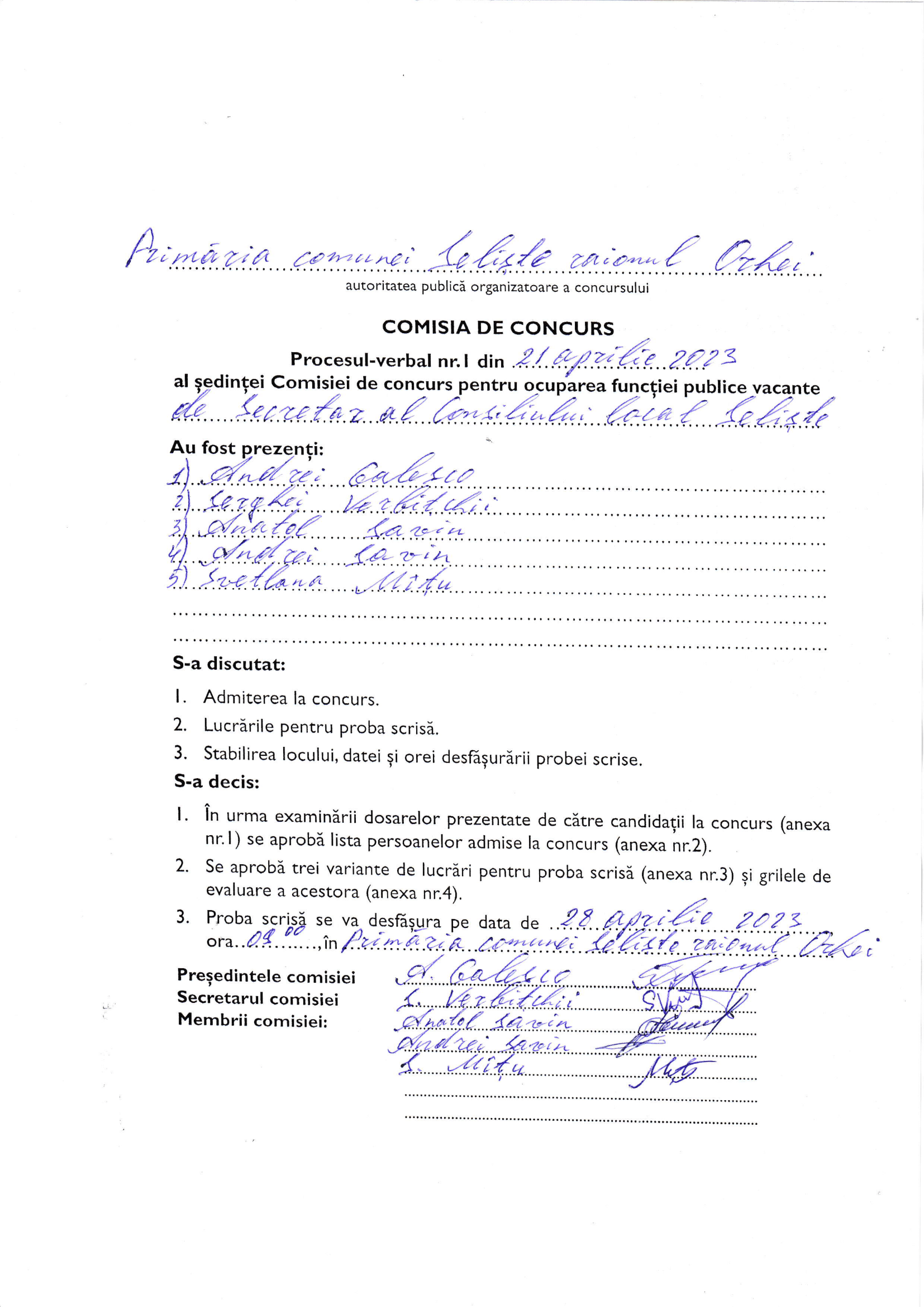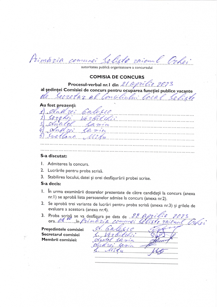 Proces Verbal nr. 1 al comisiei de concurs